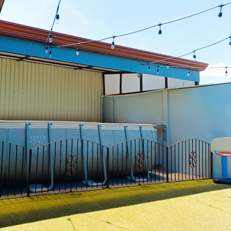 ✔️ Patio interior Con un área cubierta para una piscina estructural